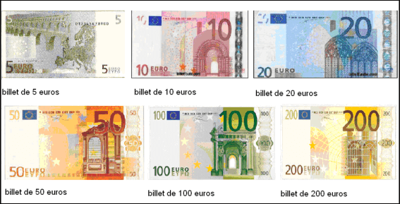 Voici à quoi ressemblent les billets de banque que tu peux utiliser pour payer :