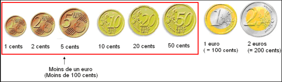 Lorsque quelque chose vaut moins de 1 euro, on paie avec des cents d’euro.